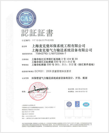 上海麥克曼氣力輸送設(shè)備有限公司系統(tǒng)成套設(shè)備認(rèn)證證書 ······························································································································································································································